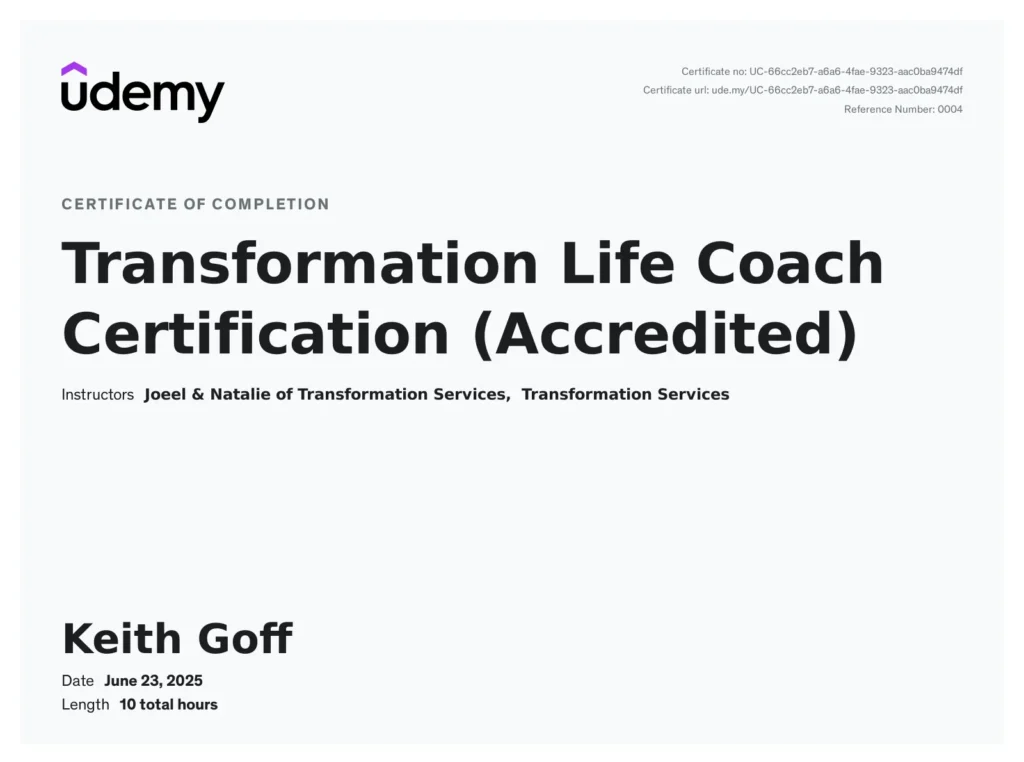 Certified Life Coach • Transformation Coaching • Men’s Personal Development